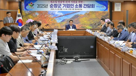 순창군이 중소기업 지원 정책 강화를 위해 기업인들과 간담회를 열고 현장의 애로사항과 건의사항을 청취하고 있다. [사진=순창군] |