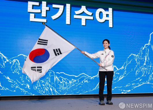 [서울=뉴스핌] 류기찬 기자 = 이수경 2026 밀라노 동계올림픽 선수단장이 22일 오후 서울 송파구 올림픽파크텔에서 열린 ‘2026 밀라노 동계올림픽 선수단 결단식’에서 단기를 흔들고 있다. 2026.01.22 ryuchan0925@newspim.com |