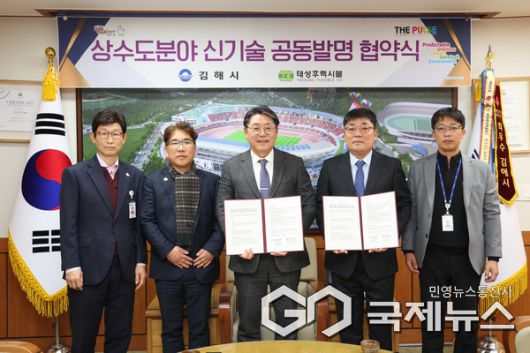 (김해=국제뉴스) 황재윤 기자 = 김해시는 지난 21일 김해시청에서 상수도 분야 국내 최고 기술력을 갖춘 태성후렉시블과 신기술 개발 공동 발명 협약을 체결했다고 22일 밝혔다.