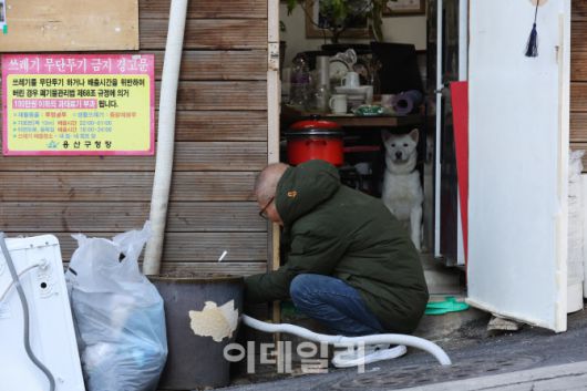 아침 기온이 영하 19도까지 떨어지는 강추위가 이어지는 가운데 서울 한 쪽방촌에 사는 주민이 동파되자 배수구를 교체하고 있다. (사진=이영훈 기자) |