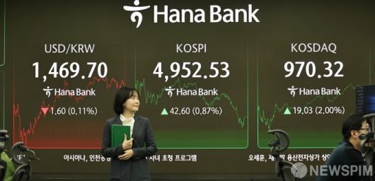한국거래소에 따르면 코스피는 이날 전 거래일 대비 42.60포인트(0.87%) 상승한 4952.53에 거래를 마쳤다. 외국인과 기관은 각각 2982억원, 1026억원 어치 순매도했고, 개인은 1564억원 순매수했다.