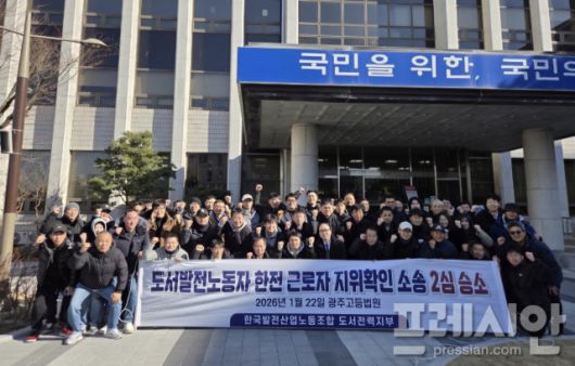 한국발전산업 노동 조합 도서전력지부 소속 조합원 183명이 한국전력공사를 상대로 제기한 '근로자지위확인 소송' 항소심 선고공판에서 승소했다. 지난 2020년 소송이 시작된 지 6년여 만이다.