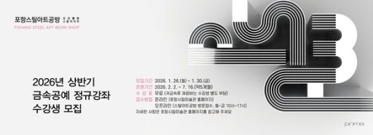 (포항=국제뉴스) 강동진 기자 = 포항시립미술관은 오는 26일부터 30일까지 스틸아트공방 정규강좌 수강생을 모집한다고 22일 밝혔다.