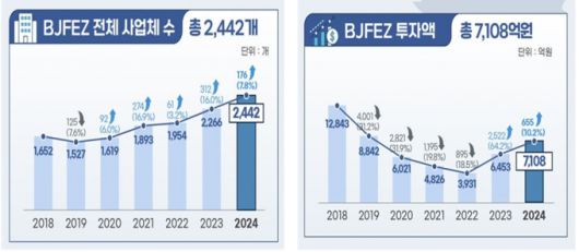 이는 지난해 6∼12월 진행한 산업통상자원부 주관 '2024년 기준 BJFEZ 사업체 실태조사'결과로 투자액 역시 7108억원으로 전년 6453억원보다 10.2% 증가했다.