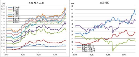 또다른 채권시장 참여자는 “그린란드를 둘러싼 미국과 유럽간 갈등 완화에 원화 환율, 주식, 채권시장이 모두 강세를 기록했다. 아침에 나온 4분기 GDP 마이너스도 채권시장엔 우호적으로 작용했다. 일본 금리가 하락한데다 선물시장에서 증권의 매수세도 많았다”고 말했다.