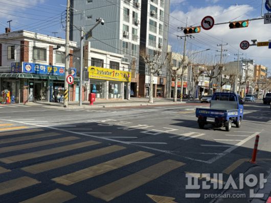 ▲ 어린이보호구역 통행속도 제한을 탄력적으로 운영해야 한다는 정책적 필요성이 힘을 얻고 있다. 사진은 대전 중구 부사동의 어린이보호구역내 횡단보도. ⓒ프레시안(문상윤) |