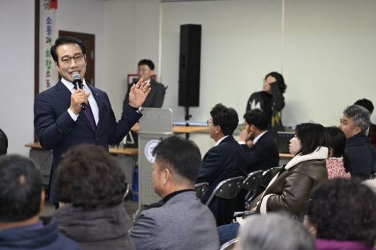 [남원=뉴시스] 22일 남원시의 새해 읍면동 연초 순회방문인 '2026 시민공감 소통한마당'이 시작됐다. 첫날 방문지인 산동면에서 최경식 시장이 새해 남원시의 시정 비전을 설명하고 있다. *재판매 및 DB 금지 |