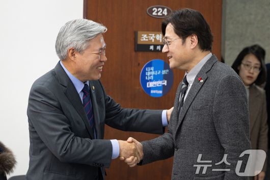 (서울=뉴스1) 유승관 기자 = 서왕진 조국혁신당 원내대표가 22일 서울 여의도 국회에서 홍익표 청와대 정무수석을 접견하고 있다. 2026.1.22/뉴스1