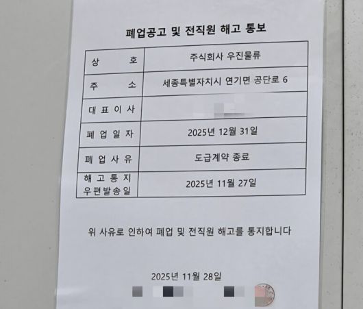 한국지엠과 향후 협의를 약속한 상태에서 노조는 ‘신의를 지킨다’며 11월 중순 예정된 파업 일정을 미뤘다. 그리고 2주 뒤인 11월28일 우진물류는 ‘도급계약 종료’를 사유로 폐업 공고와 함께 전 직원 해고를 통보했다. 그렇게 노조 설립 반년 만에, 그들은 모두 ‘해고자’가 됐다