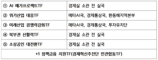 이번 TF 체계는 AI를 중심으로 한 위기 산업 대응과 미래 산업 경쟁력 확보를 기본으로, 북부권 균형 발전과 민생 경제 회복을 특별 과제로 설정해 집중 관리한다는 점에서 의미가 있다. 아울러 전략 산업과 관광 인프라 중심의 정책금융 지원 TF도 별도로 구성해, 대형 사업을 중심으로 미래 산업 육성과 지역 개발 활성화에 힘을 실을 계획이다.