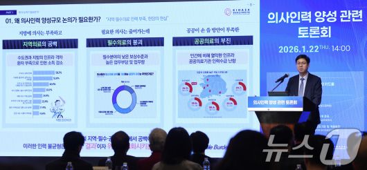 22일 서울 웨스틴조선 서울 오키드룸에서 열린 의사인력 양성 관련 토론회에서 참석자들이 신현웅 한국보건사회연구원 보건의료정책연구실 실장의 발제를 경청하고 있다. 2026.1.22/뉴스1 ⓒ News1 박지혜 기자 |