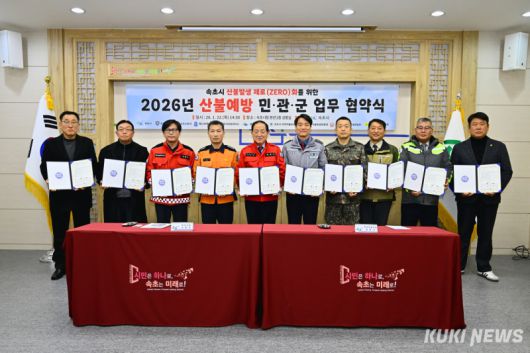 이를 위해 속초시는 이날 시청 상황실에서 10개 기관·단체가 참여한 가운데 2026년 산불 예방 민·관·군 업무협약을 체결했다.