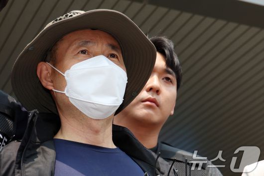금전 문제로 갈등을 빚은 지인과 평소 앙심을 품었던 이웃 등 4명을 살상한 혐의로 체포된 피의자 차철남(56·중국 국적)이 27일 오전 경기 시흥경찰서에서 검찰로 송치되고 있다. 2025.5.27/뉴스1 ⓒ News1 황기선 기자 |