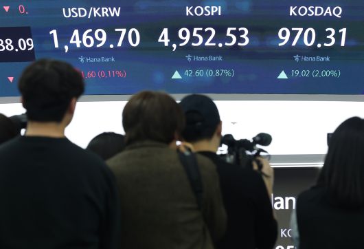 이날 서울 외환시장에서 미국 달러화 대비 원화 환율의 주간 거래 종가(오후 3시 30분 기준)는 전 거래일보다 1.4원 낮아진 1469.9원이었다.