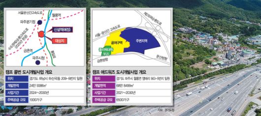 파주시에서는 캠프 에드워즈와 캠프 자이언츠의 도시복합개발 사업이 추진되고 있다. 캠프 에드워즈는 2020년 현대엔지니어링 컨소시엄과 업무협약을 맺고 현재 지구 지정을 위해 사전 협의를 진행 중이다. 이르면 올해 초 지구 지정 및 개발 계획이 고시될 것으로 전망된다. 전체 6500가구 규모의 아파트 공급이 추진될 예정이다. 이들 부지는 파주-문산 고속도로 인근이고 경의중앙선 월롱역과도 가깝다. 인근에 파주 LCD 산단, 월롱 산단 등이 있어 주택 수요 역시 큰 지역이다. 2기 신도시인 파주 운정지구가 건설되면서 캠프 에드워즈의 지리적 가치 역시 상승했다.