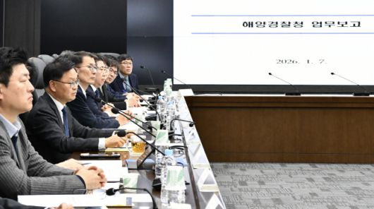 김성범 해양수산부 장관 직무대행이 지난 7일 해양수산부 대회의실에서 해양경찰청을 대상으로 한 2026년도 업무보고를 주재하고 있다. /연합 |
