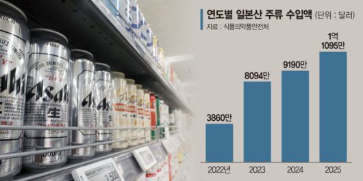 22일 식품의약품안전처 수입식품통계에 따르면 지난해 일본산 주류(사케·맥주·소주·위스키 합산) 수입액은 1억1095만달러를 기록하며 역대 최대치를 집계했다. 일본산 주류 수입액은 노재팬 운동과 코로나19가 종료된 이후 증가세다. 지난 2022년 3860만달러에서 2023년 8094만달러로 늘었으며, 2024년 9190만달러를 넘어선 데 이어 지난해 1억달러를 돌파했다.