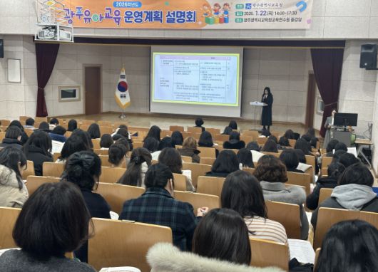 광주시교육청은 22일 광주시교육청교육연수원 중강당에서 관내 공·사립유치원 교원 및 교육전문직원 등 대상으로 ‘2026학년도 광주유아교육 운영계획 설명회’를 개최했다. [사진=광주광역시교육청] |