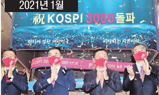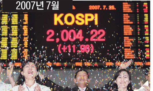 코스피가 걸어온 길 국내 대표 주가지수인 코스피는 1989년 3월31일 최초로 1000을 돌파하며 ‘네 자릿수 지수’ 시대를 열었지만, 1997년 외환위기로 폭락했다. 이후 1999년 다시 1000선을 회복한 뒤 펀드 투자 열풍(2007년)과 코로나19 호황기(2021년), 반도체 슈퍼사이클(2025년)을 거치며 마디 지수를 갈아치워 왔다. 코스피 지수는 지난해 10월27일 4000선을 돌파한 지 3개월여 만인 22일 장중 5000선 고지를 처음 밟았다. 연합뉴스 |