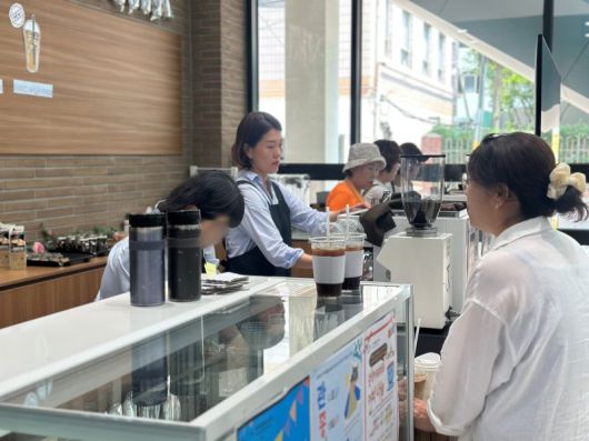 서울 관악구의 '50플러스센터' 1층에 위치한 카페 공간에서 교육생들이 바리스타 실습을 진행하고 있다. 관악구 제공 |