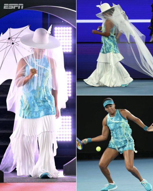 오사카 나오미는 경기 후 "이번 의상은 나이키와 함께 직접 디자인에 참여했다"며 "영감의 출발점은 해파리였다. 물속에서 유영하는 듯한 느낌을 표현하고 싶었다"고 설명했다. 여기에 더해 모자와 양산에 장식된 '나비'는 2021년 호주오픈 우승 당시의 기억을 상징하는 요소다.