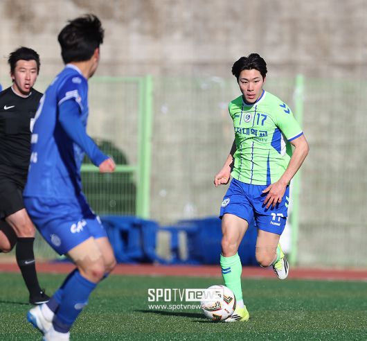 [스포티비뉴스=김천, 곽혜미 기자] 제22회 1,2학년 대학축구대회 중앙대와 상지대의 결승전이 22일 오후 경상북도 김천대학교 대운동장에서 열렸다. 상지대 이상민이 패스를 시도하고 있다. <저작권자 ⓒ SPOTV NEWS. 무단전재 및 재배포 금지>
