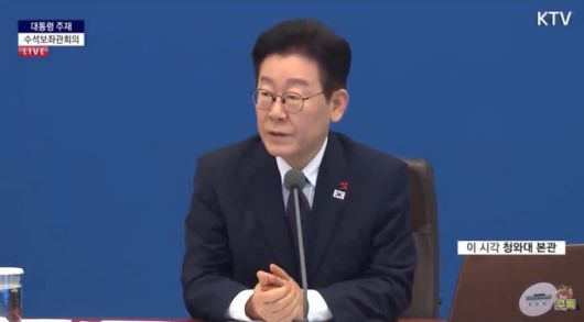 이재명 대통령이 22일 오후 청와대에서 20차 수석보좌관회의를 주재하고 있다. [사진=KTV] |