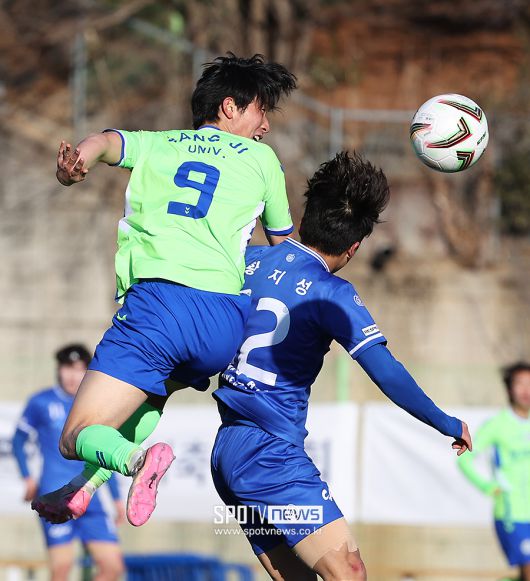 [스포티비뉴스=김천, 곽혜미 기자] 제22회 1,2학년 대학축구대회 중앙대와 상지대의 결승전이 22일 오후 경상북도 김천대학교 대운동장에서 열렸다. 상지대 이주훈이 헤더를 시도하고 있다. <저작권자 ⓒ SPOTV NEWS. 무단전재 및 재배포 금지>