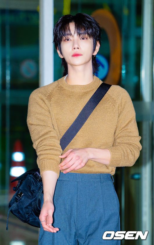 세븐틴 조슈아가 출국하며 포즈를 취하고 있다. 2026.01.22 / rumi@osen.co.kr