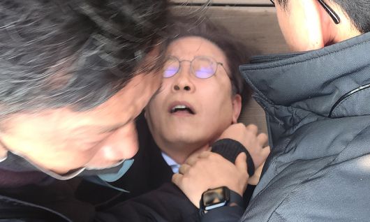 이재명 대통령(당시 더불어민주당 대표)이 2024년 1월 2일 부산 가덕도에서 신원미상인에게 피습을 당한 뒤 쓰러져 있다. 뉴스1