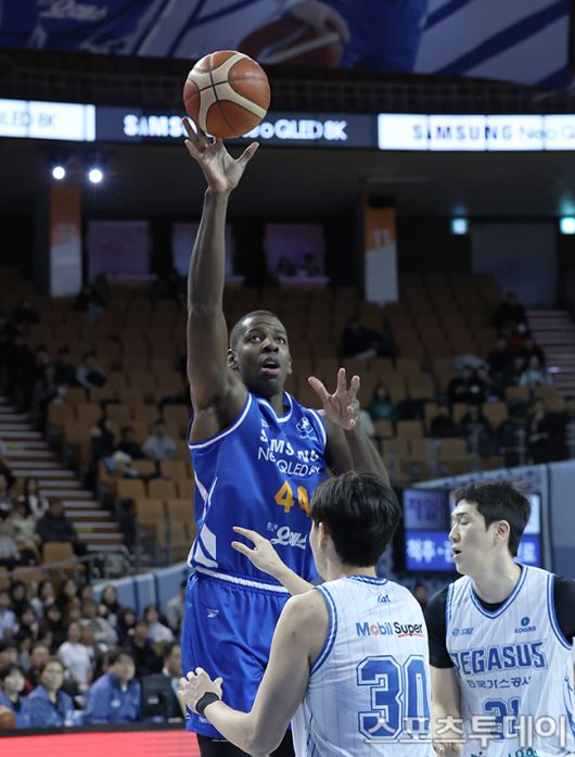 [스포츠투데이 권광일 기자] 2025-2026 LG전자 프로농구 서울삼성와 대구한국가스공사의 경기가 22일 서울 잠실실내체육관에서 열렸다. 삼성 앤드류 니콜슨이 골밑슛을 하고 있다. 2026.01.22. [스포츠투데이 권광일 기자 sports@stoo.com]