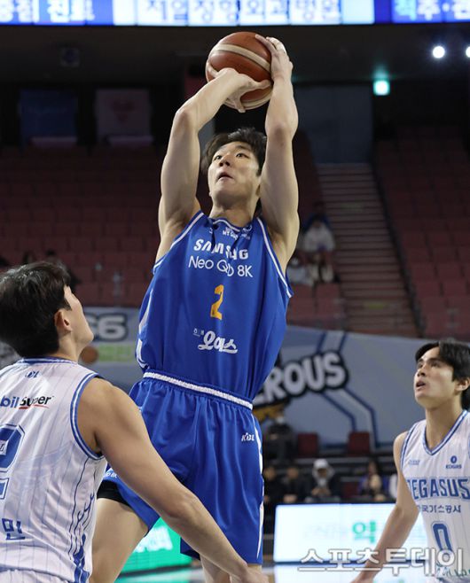 [스포츠투데이 권광일 기자] 2025-2026 LG전자 프로농구 서울삼성와 대구한국가스공사의 경기가 22일 서울 잠실실내체육관에서 열렸다. 삼성 이원석이 중거리슛을 하고 있다. 2026.01.22. [스포츠투데이 권광일 기자 sports@stoo.com]