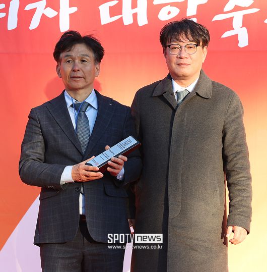 [스포티비뉴스=김천, 곽혜미 기자] 제22회 1,2학년 대학축구대회 중앙대와 상지대의 결승전이 22일 오후 경상북도 김천대학교 대운동장에서 열렸다. 최우수지도자상을 수상한 중앙대 오해종 감독이 기념 촬영을 하고 있다. <저작권자 ⓒ SPOTV NEWS. 무단전재 및 재배포 금지>