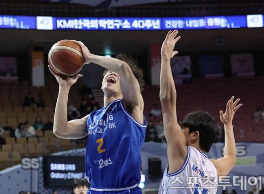 [스포츠투데이 권광일 기자] 2025-2026 LG전자 프로농구 서울삼성와 대구한국가스공사의 경기가 22일 서울 잠실실내체육관에서 열렸다. 삼성 이원석이 골밑에서 슛을 시도하고 있다. 2026.01.22. [스포츠투데이 권광일 기자 sports@stoo.com]