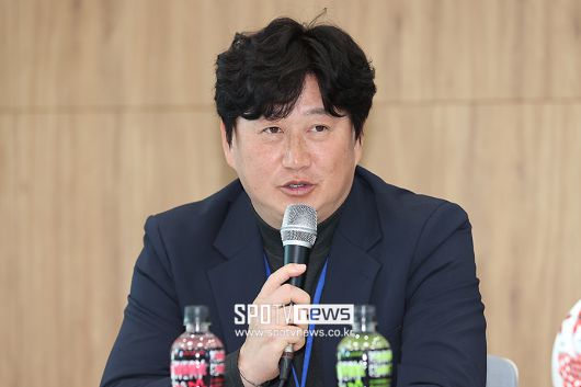 [스포티비뉴스=김천, 곽혜미 기자] 2026 한·일 대학축구연맹 덴소컵 협약식이 22일 오전 경상북도 김천시 종합스포츠타운 실내사격장에서 열렸다. 한국대학축구연맹 전무이사 겸 단국대 감독을 맡고 있는 박종관 감독이 질문에 답하고 있다. <저작권자 ⓒ SPOTV NEWS. 무단전재 및 재배포 금지>
