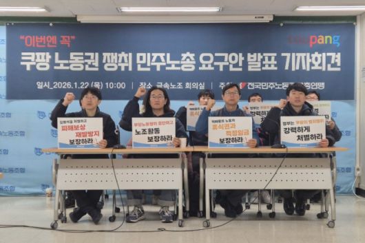 강민욱 서비스연맹 전국택배노동조합 쿠팡본부 준비위원장은 "택배노조의 요구는 명확하다. 죽지 않고 일할 권리, 과로를 줄이고 쉴 권리, 그리고 지속가능한 택배산업을 구축하자는 것"이라며 "쿠팡과 정부는 이 절박한 목소리에 응답해 즉각적인 제도 개선에 나서달라"고 촉구했다.
