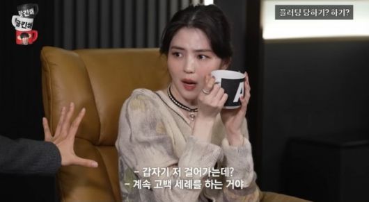 이에 한소희는 "싫어하는 사람한테 플러팅 당하는데 싫다고 하면 멈추냐"고 되물었고, 재재는 "절대 안 멈춘다"고 답했다.