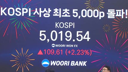 일단은 5000피 달성이라는 이정표를 쓴 것에 대해서는 저도 개인투자자 입장에서 굉장히 반가운 일이죠. 왜냐, 한국 증시는 그동안 늘 꼬리표처럼 달고 다녔던 게 코리아 디스카운트. 경제 체력도 괜찮고 수출하는 기업들도 괜찮은데 삼성전자가 왜 한국 증시에 있어서 저렇게 저평가돼 있느냐라는 얘기를 외국인들이 했던 경험이 있단 말이에요. 그런데 어쨌든 지금 코스피가 사실은 명동에서 시작했어요, 유가증권시장. 대한증권거래소. 거기서 1956년 12개 상장사, 시가총액 150억으로 시작을 했는데 지금 시가총액이 4600억이 넘어가니 굉장히 고성장을 했고 코스피지수가 지수 산정하면서 카운트되기 시작한 건 얼마 안 됐어요. 이게 1980년 1월부터인데 그때 당시 100, 지수 100으로 출발해서 지금 어쨌든 오늘 장중 5019 찍고 조금은 상승폭이 둔화됐지만 거의 50배 가까이 오른 거예요, 46년 만에. 이런 걸 보면 우리나라 증시의 볼륨이 굉장히 커졌구나. 그런데 우리나라는 아직까지 선진 증시가 아닙니다. MSCI 신흥국 증시에 포함되어 있는데 어쨌든 46년 만에 5000피 시대를 연 건 3박자가 맞았다. 일단 가장 큰 건 슈퍼사이클이라는 반도체 계열 실적이라는 것. 두 번째가 정부의 제도 개선 여력이 있고 세 번째가 포멋입니다. 앵커님이 주변 사람들이 다 샀다고 하는데 저도 사야 될까요라고 걱정하는 것만큼 주변에 증시에 호시탐탐 조금만 조정을 받으면 나도 대형주 올라타야지 하시는 분들이 너무 많거든요. 그런 증시 대기성 자금이 거의 200조 원에 가깝다 보니까 이 세 가지 합작품, 유동성의 합작품이라고 봅니다.
