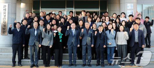 (서울=뉴스1) 김명섭 기자 = 이명구 관세청장이 22일 충남 천안 관세국경인재개발원에서 새로운 비전을 선포하는 현판 제막식을 하고 있다. (관세청 제공. 재판매 및 DB금지) 2026.1.22/뉴스1msiron@news1.krCopyright ⓒ 뉴스1. All rights reserved. 무단 전재 및 재배포, AI학습 이용 금지.