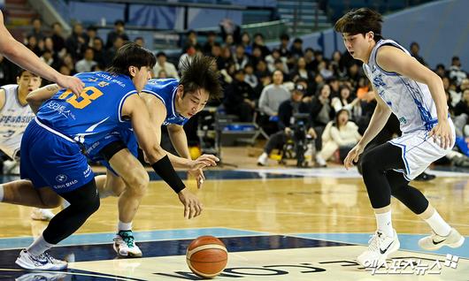 (엑스포츠뉴스 잠실, 고아라 기자) 22일 오후 서울 송파구 잠실실내체육관에서 열린 2025-2026 LG전자 프로농구 서울 삼성과 대구 한국가스공사의 경기, 삼성 구탕 이원석이 볼을 향해 돌진하고 있다.고아라 기자 iknow@xportsnews.com