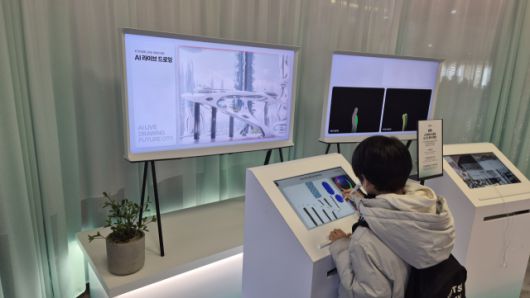 가령 1970~1980년대 가정 곳곳에 보급됐던 다이얼식 전화기들과 이를 실제로 사용하던 모습을 담은 영상 사료가 AI 도움으로 고화질로 재생되고 있었다. KT의 최신 AI 기술을 전시한 ‘AI 라이브 드로잉존’에서는 한 어린이 방문객이 투박하게나마 그림을 그리느라 여념이 없었다. 그림을 그리면 AI가 고품질이나 예술 작품으로 바꿔주고 이를 에코백으로 인쇄해 굿즈로 만들 수 있는 체험 공간이다.