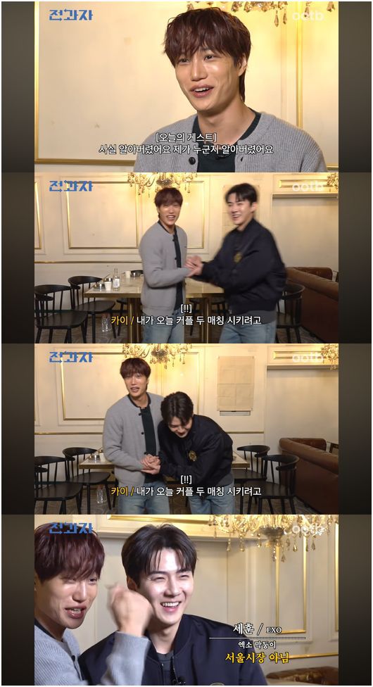 22일 ootd 유튜브 채널에서는 ‘대학생판 솔로지옥 OPEN(feat. 엑소 세훈)[체대X음대 과팅]’이라는 영상이 공개됐다. 이날 카이와 함께 과팅을 관람할 엠씨로 세훈이 등장했다. 카이는 “진짜 세훈이가 연애 프로그램을 아예 안 봐요. 왜 보냐는 주의다. 전과팅에서 신세계를 한번 맛 봐주려고 한다”라며 각오를 다졌다.