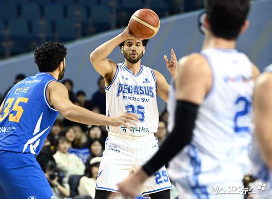 (엑스포츠뉴스 잠실, 고아라 기자) 22일 오후 서울 송파구 잠실실내체육관에서 열린 2025-2026 LG전자 프로농구 서울 삼성과 대구 한국가스공사의 경기, 한국가스공사 보트라이트가 패스를 시도하고 있다.고아라 기자 iknow@xportsnews.com