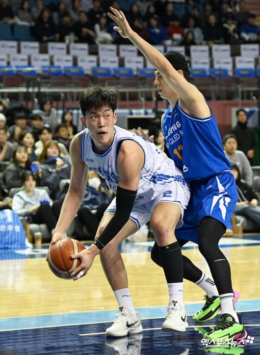 (엑스포츠뉴스 잠실, 고아라 기자) 22일 오후 서울 송파구 잠실실내체육관에서 열린 2025-2026 LG전자 프로농구 서울 삼성과 대구 한국가스공사의 경기, 한국가스공사 신승민이 공격을 시도하고 있다.고아라 기자 iknow@xportsnews.com