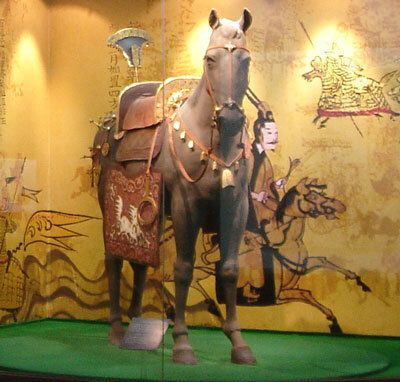 고대 말갖춤을 복원하여 화려한 꾸며진 말모형 |