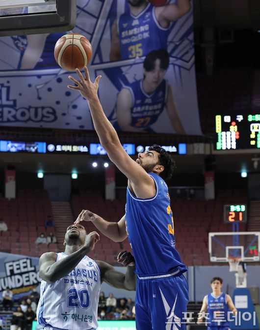 [스포츠투데이 권광일 기자] 2025-2026 LG전자 프로농구 서울삼성와 대구한국가스공사의 경기가 22일 서울 잠실실내체육관에서 열렸다. 삼성 케렘 칸터가 골밑 슛을 시도하고 있다. 2026.01.22. [스포츠투데이 권광일 기자 sports@stoo.com]