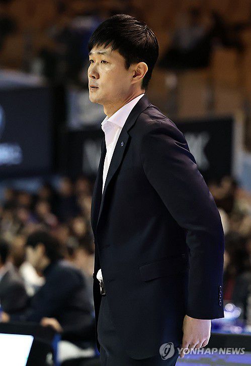 (서울=연합뉴스) 김인철 기자 = 22일 서울 송파구 잠실실내체육관에서 열린 2025-2026 LG전자 프로농구 서울 삼성 썬더스와 대구 한국가스공사의 경기. 강혁 가스공사 감독이 경기를 지켜보고 있다. 2026.1.22