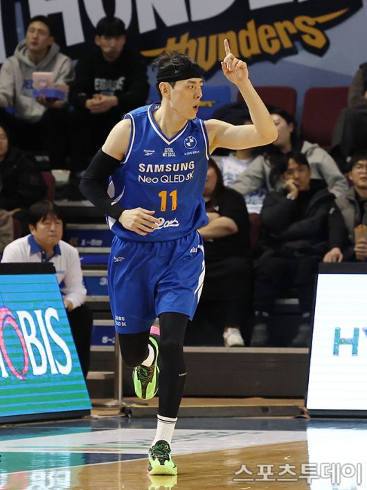 [스포츠투데이 권광일 기자] 2025-2026 LG전자 프로농구 서울삼성와 대구한국가스공사의 경기가 22일 서울 잠실실내체육관에서 열렸다. 삼성 이관희가 3점슛을 성공하고 있다. 2026.01.22. [스포츠투데이 권광일 기자 sports@stoo.com]