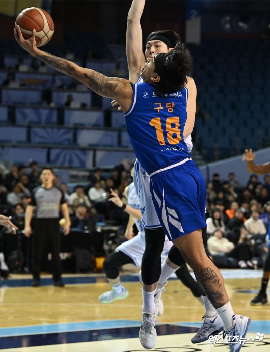 (엑스포츠뉴스 잠실, 고아라 기자) 22일 오후 서울 송파구 잠실실내체육관에서 열린 2025-2026 LG전자 프로농구 서울 삼성과 대구 한국가스공사의 경기, 삼성 구탕이 슈팅을 시도하고 있다.고아라 기자 iknow@xportsnews.com