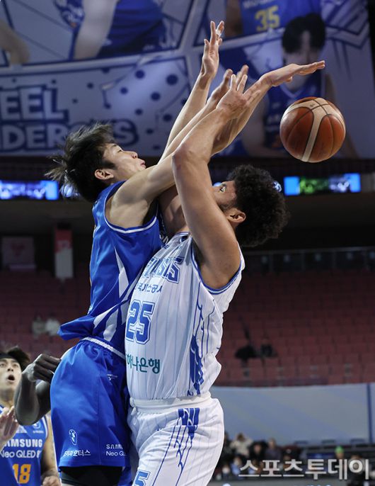 [스포츠투데이 권광일 기자] 2025-2026 LG전자 프로농구 서울삼성와 대구한국가스공사의 경기가 22일 서울 잠실실내체육관에서 열렸다. 삼성 이원석이 블로킹을 시도하고 있다. 2026.01.22. [스포츠투데이 권광일 기자 sports@stoo.com]